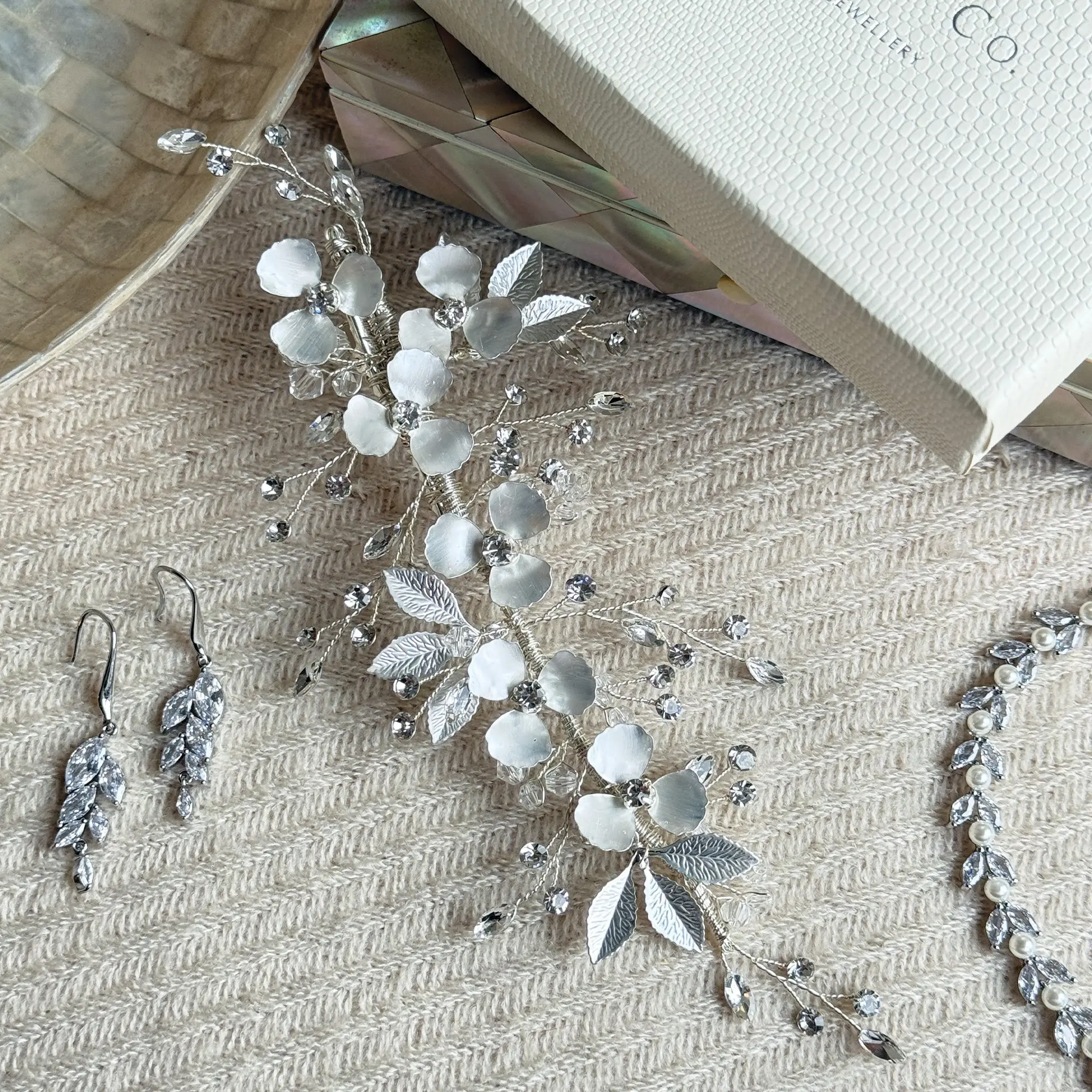 Une barrette florale romantique pour une mariée délicate et lumineuse.