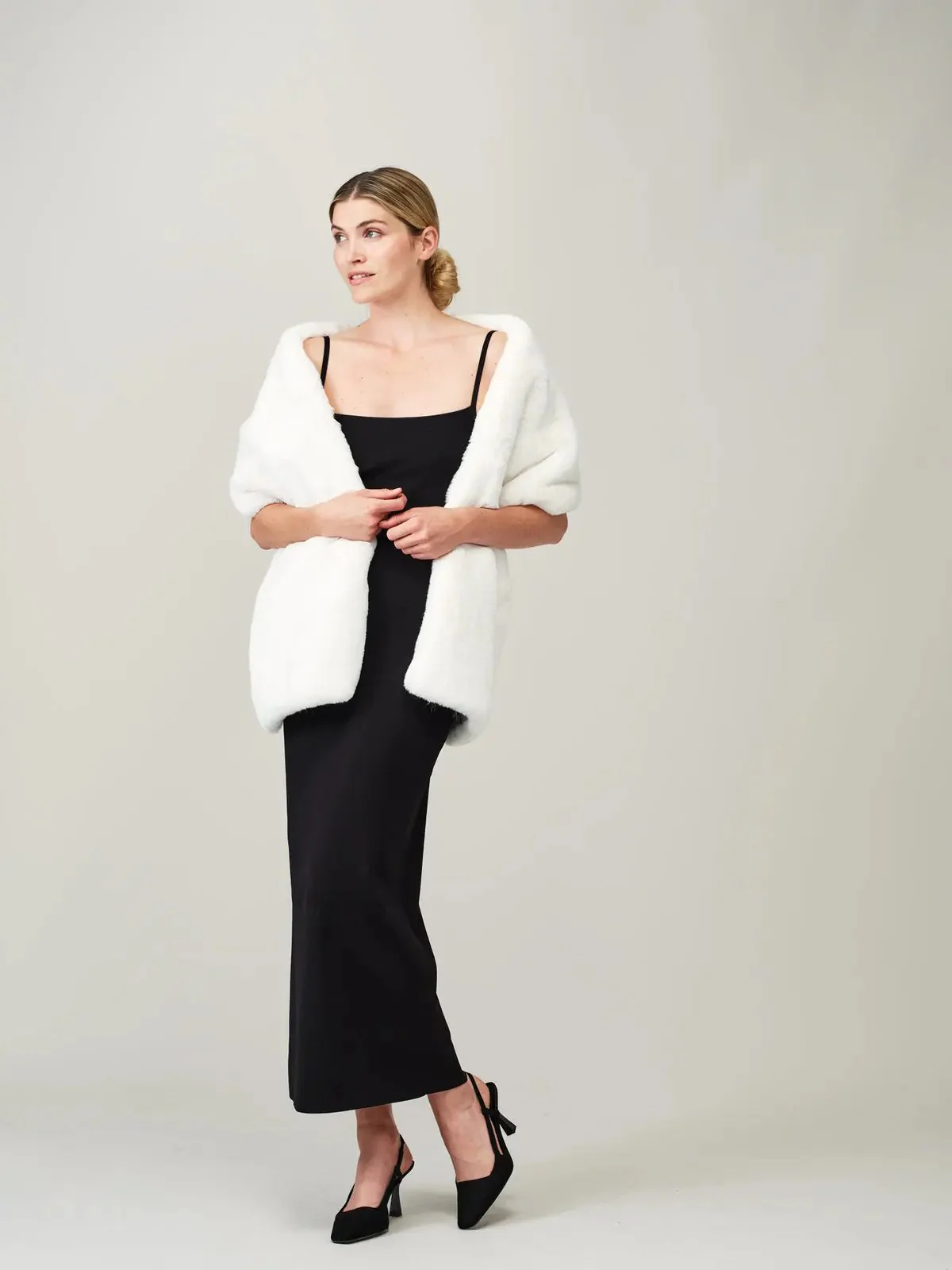 ÉTOLE DE MARIÉE EN FAUSSE FOURRURE DE HAUTE QUALITÉ- NUAGE D’IVOIRE