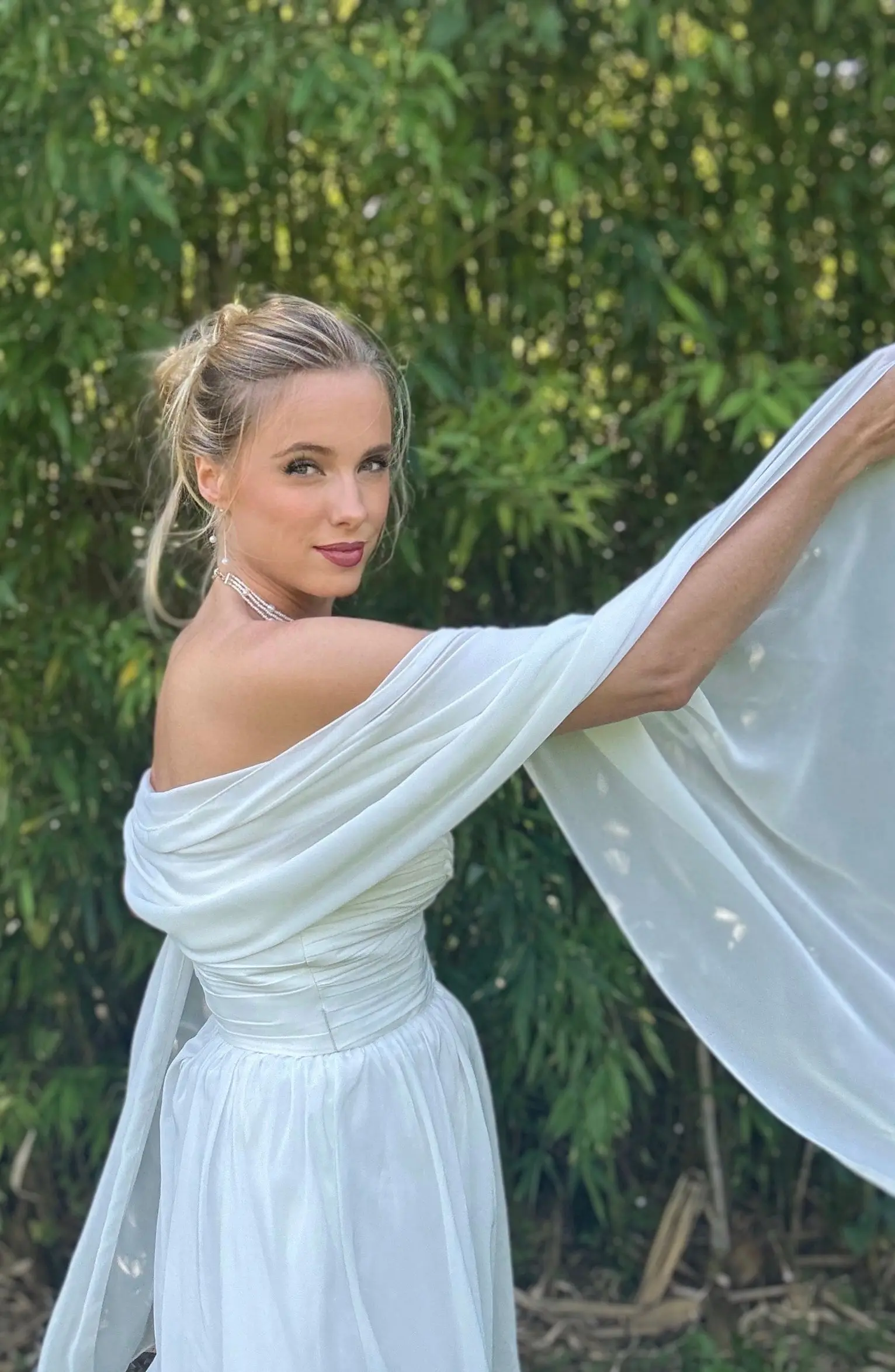 Une étole mariée en mousseline aérienne et chic facile à associer.
