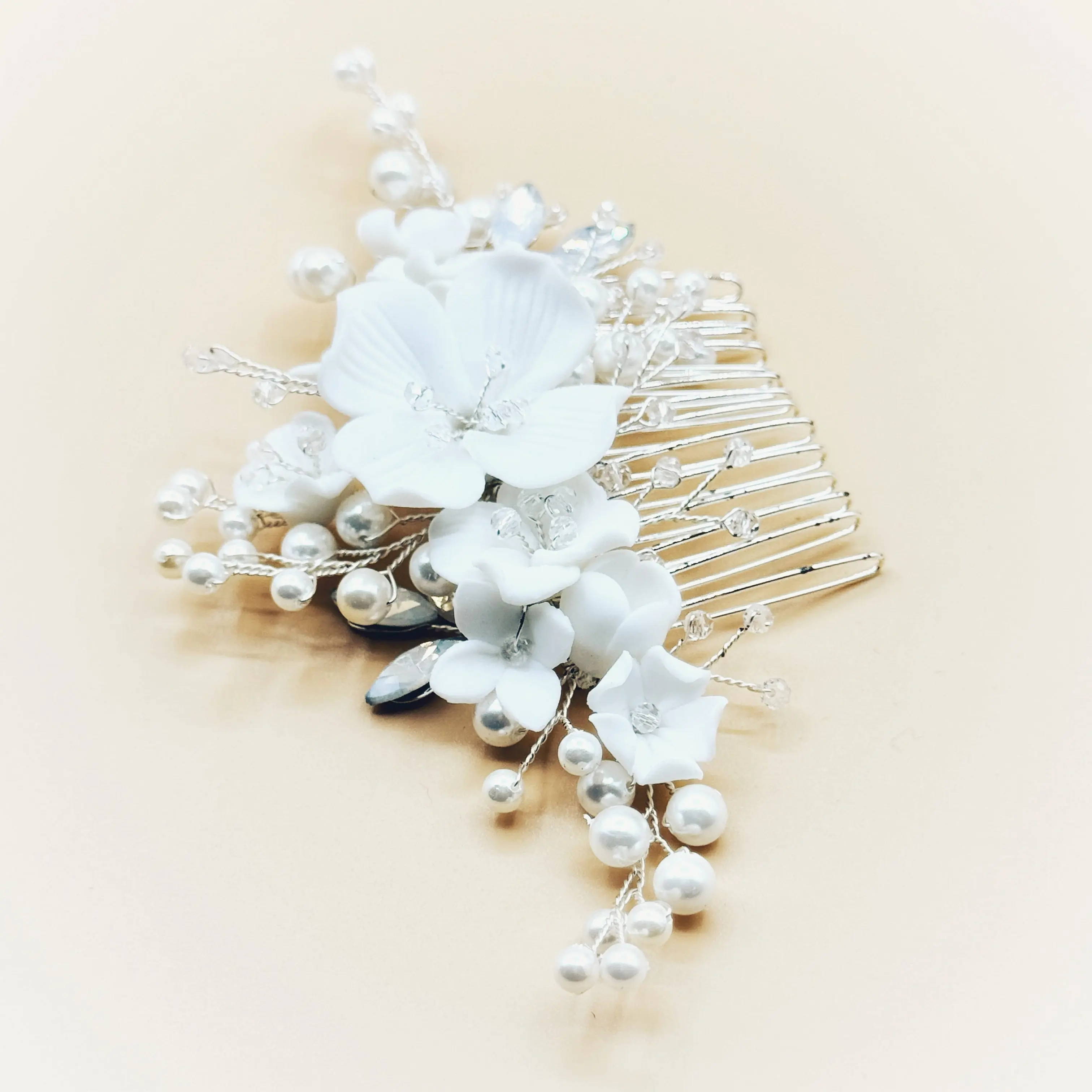 Attention sur la photo avec coiffure c'est une autre version avec un fil rose gold. Celui que je vous propose et ivoire avec un fil argent.